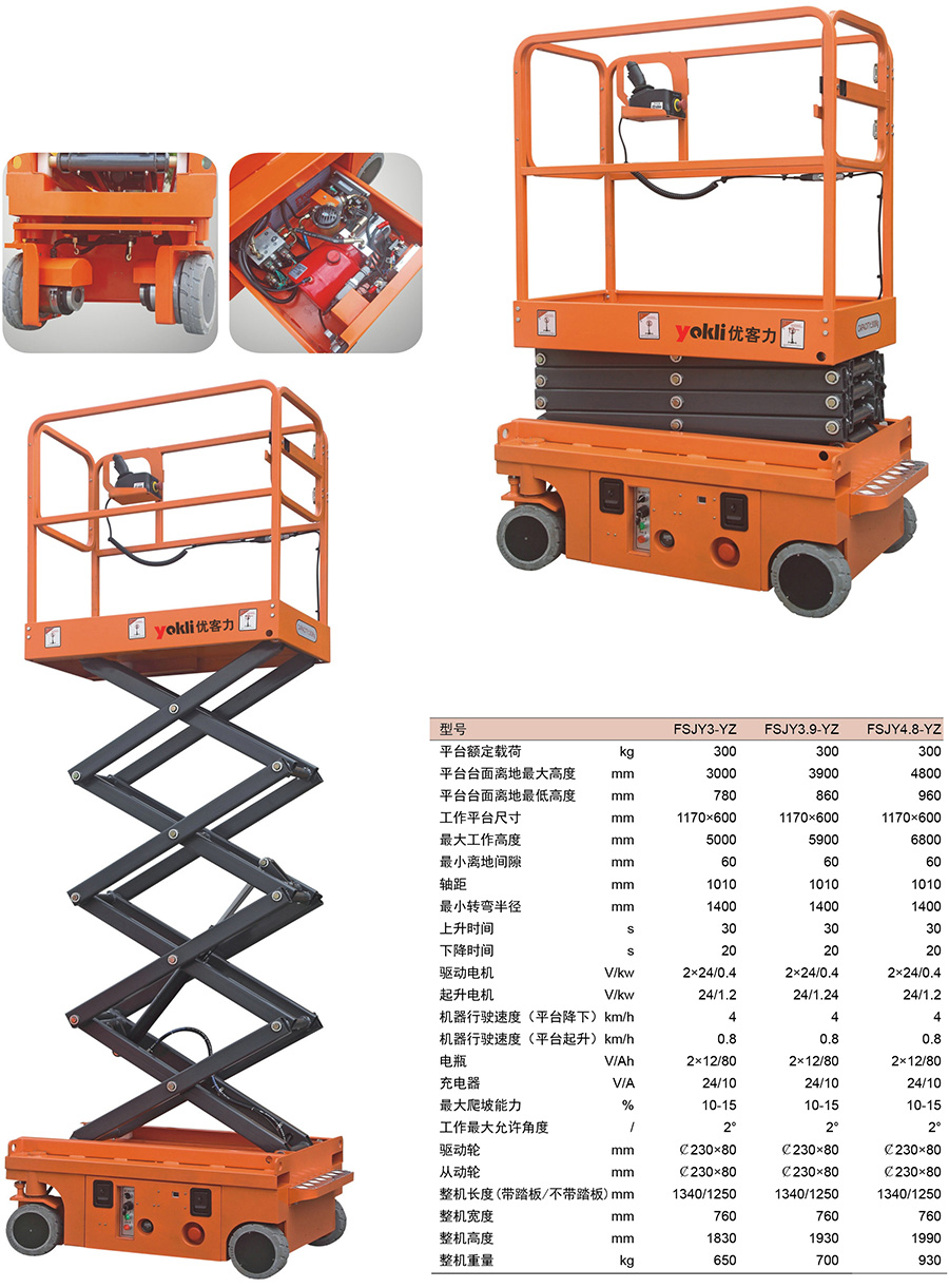 液壓轉(zhuǎn)向小型全電動(dòng)剪叉式作業(yè)平臺(tái)